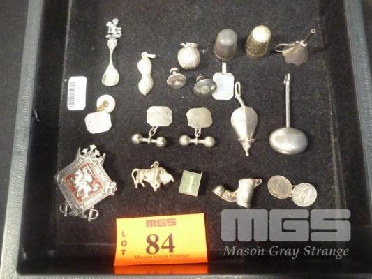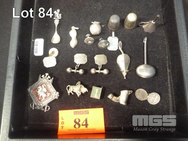 ASSORTED STERLING SILVER & HALLMARKED PENDANTS, CUFF LINKS, THIMBLES, ETC
