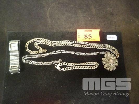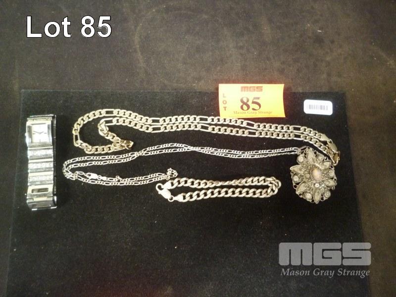 SILVER NECKLACE MARKED 750, SILVER NECKLACE MARKED 925, SILVER NECKLACE MARKED 925, WITH SILVER PENDANT MARKED 925 & DKNY WRISTWATCH
