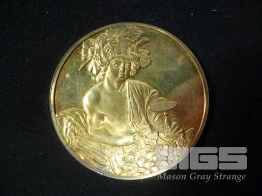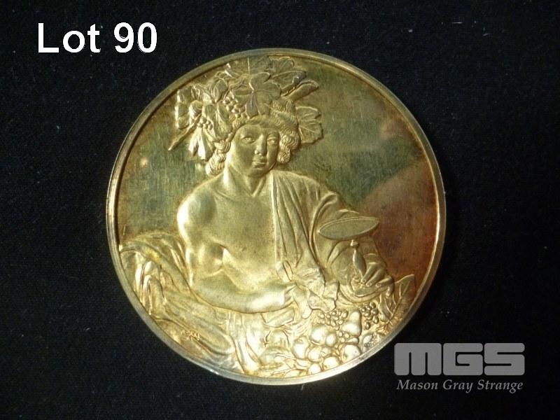 BACCHUS COMMEMORATIVE MEDAL STERLING SILVER, 24KT GOLD PLATED, 66.32gms