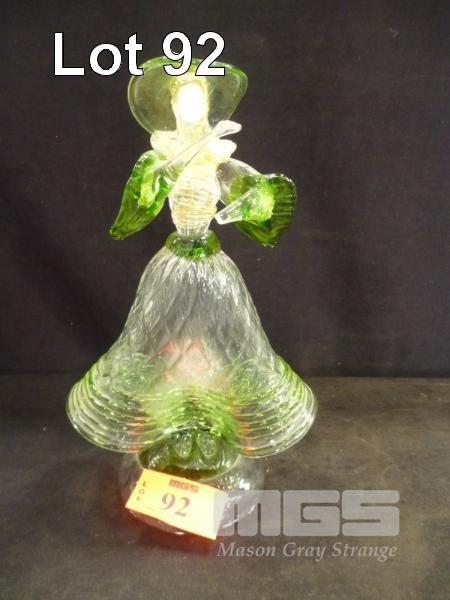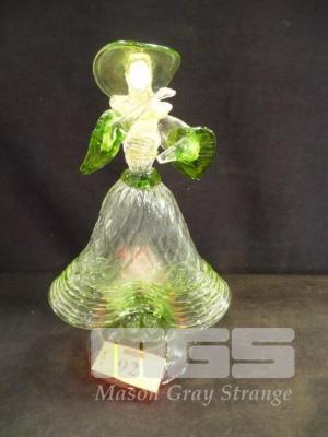 FEMALE HANDMADE GLASS FIGURINE, (1 X HAND MISSING, ALL FAULTS)