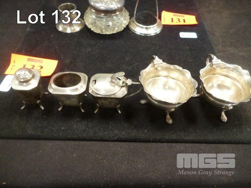 SILVER 90% CRUET SET & HALLMARKED FOOTED BOWLS
