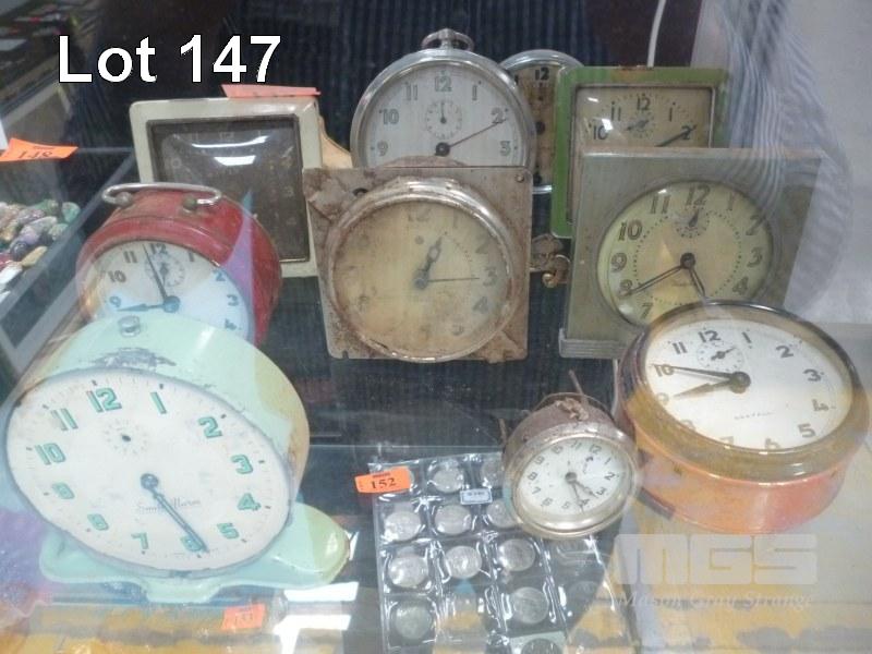 COLLECTION ASSORTED BEDSIDE ALARM CLOCKS, SMITHS, BEATALL, WESTCLOX, ETC