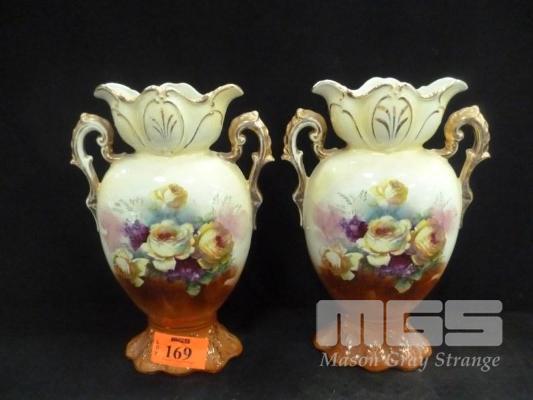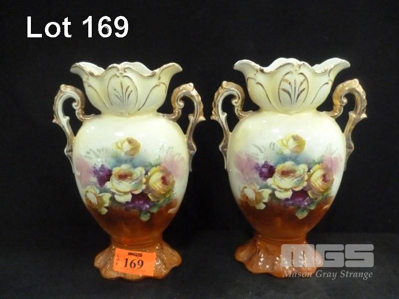 PAIR HAND PAINTED CERAMIC VASES, MADE IN ENGLAND