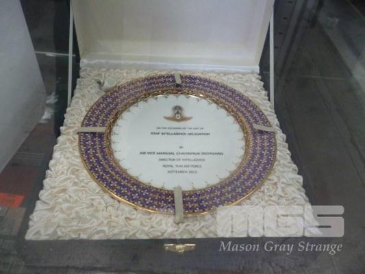 DISPLAY PLATE IN LINED CASE, 'AIR VICE MARSHAL CHAIYAPRUK DIDYASARIN, DIRECTOR OF INTELLIGENCE, ROYAL THAI AIR FORCE SEPTEMBER 2013'