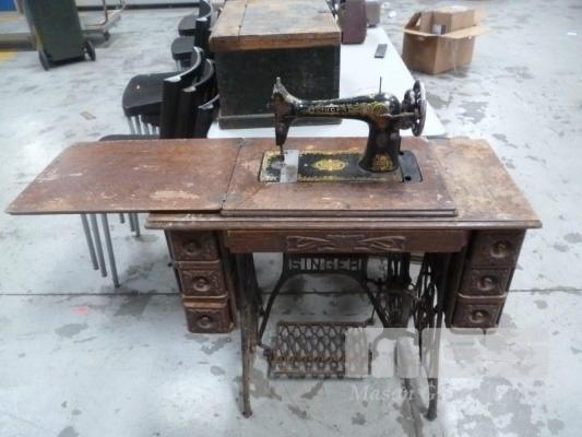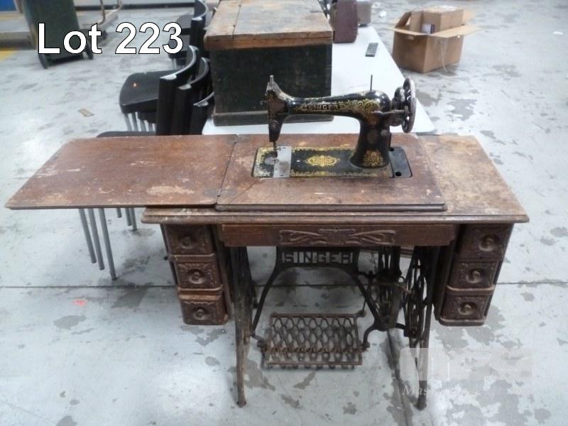 SEWING TABLE, SINGER 6 DRAWER WITH MACHINE, TREADLE BELT DRIVE