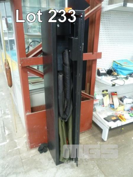 GUN SAFE, 4 RIFLE CAPACITY, WITH KEY & 2 x RIFLE CARRY BAGS