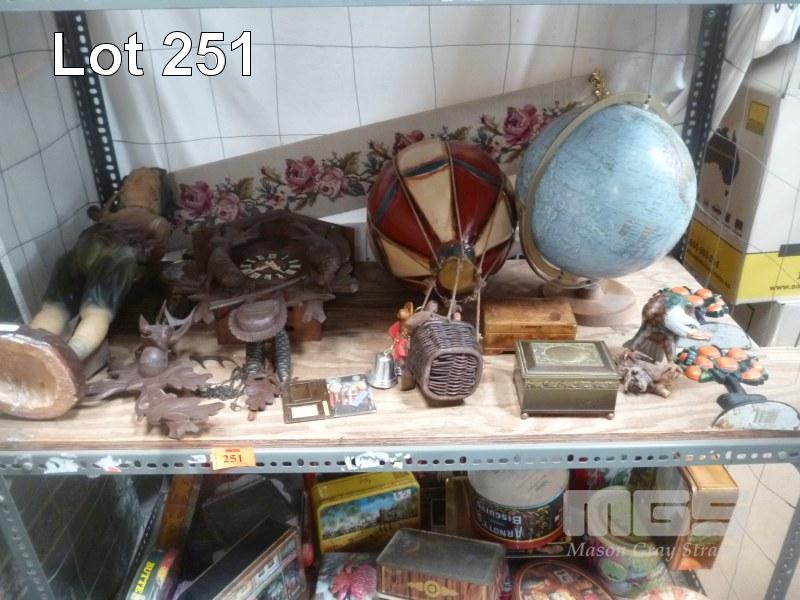 CUCKOO CLOCK, READERS DIGEST GREAT WORLD GLOBE, PLASTER STATUE, BALLOON ORNAMENT, ETC