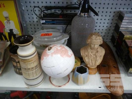 PIONEER PORTABLE CASSETTE RECORDER, WORLD GLOBE, SODA BOTTLE, ETC