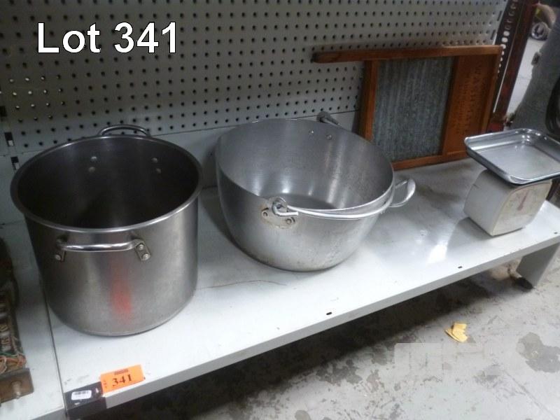 SCALES, LARGE POTS, WASHBOARD, ETC