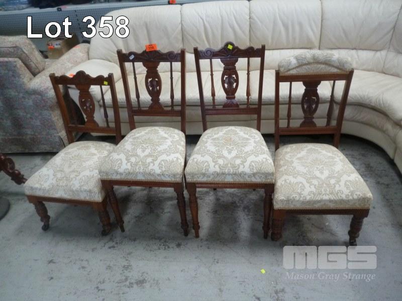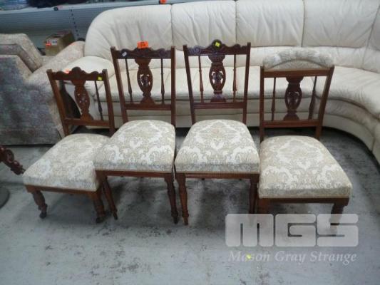 SET 4 ORNATE CARVED DINING CHAIRS, BEIGE FABRIC