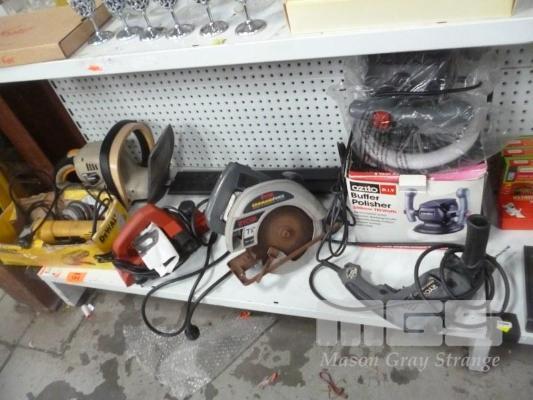ASSORTED POWER TOOLS INCLUDING CIRCULAR SAW, GRINDER, DRILL & NEW CAR POLISHER