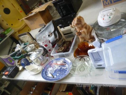 ASSORTED KITCHENWARE, DYSON ACCESSORIES, TREEN, ORNAMENTS, ETC, 1 x TABLE
