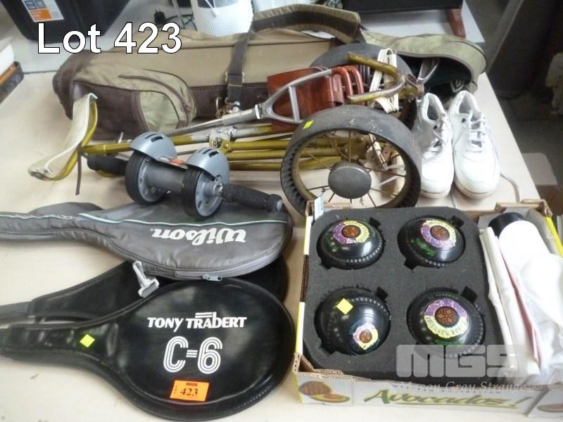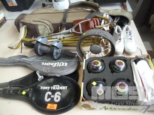 SET OF GOLF CLUBS, BUGGY, LAWN BOWLS, ETC