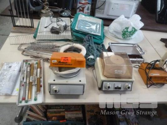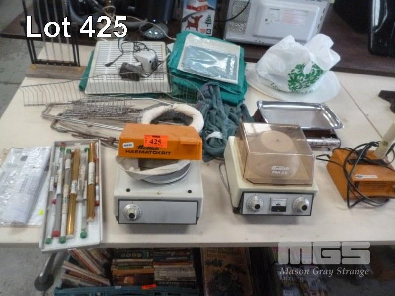 ASSORTED VETERINARY EQUIPMENT, HETTICH CENTRIFUGE, EBA35, HETTICH HAEMATOKRIT, PARI INHALIERBOY, SCALES ETC (1 x TABLE)