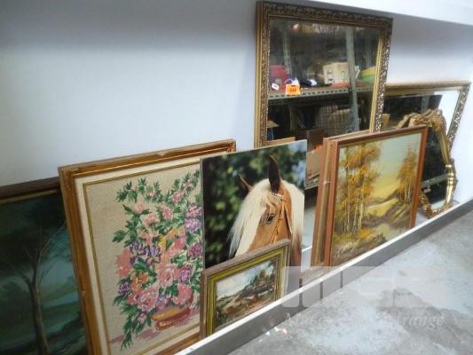 GOLD GILT FRAMED MIRRORS, FRAMED PAINTINGS & TAPESTRY