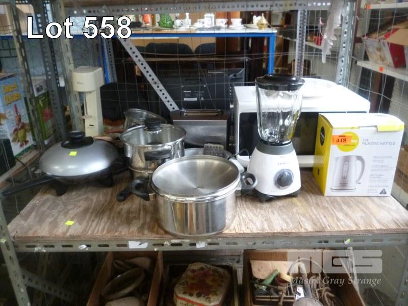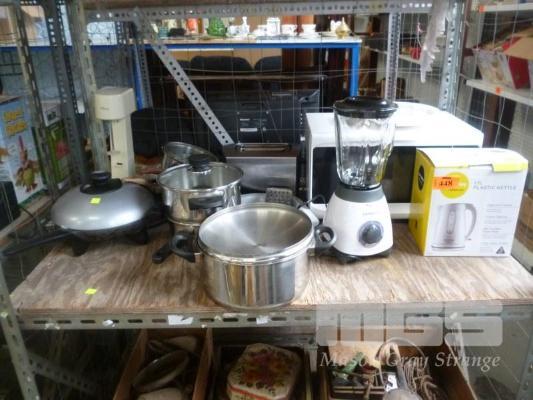 MICROWAVE OVEN, CORDLESS KETTLE, TOASTER & ASSORTED COOKWARE