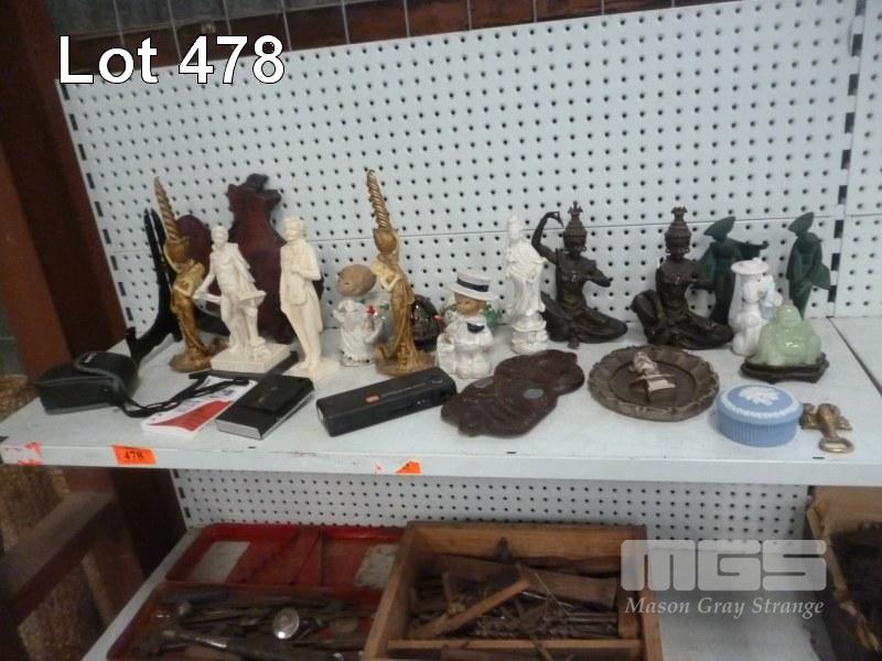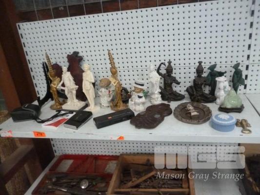 ASSORTED FIGURINES, VASES, FILM CAMERAS, WALL ART, ETC