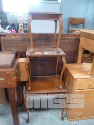 TIMBER NEST 3 x TABLES, BALL CLAW FEET, PIE CRUST EDGE, GLASS PROTECTIVE TOPS