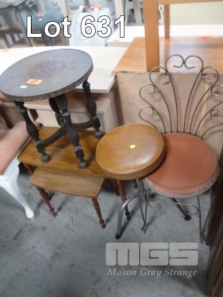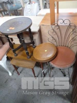 FLOOR RUG, BED STOOL, BRASS TOPPED TABLE, NEST OF 2 TABLES, BEDROOM CHAIR & VINYL STOOL