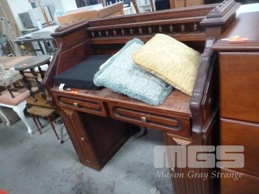 SOLID TIMBER WRITING DESK, EDWARDIAN STYLE, 2 DRAWER WITH 2 DOOR UNDERSTORAGE & GAS LIFT CHAIR