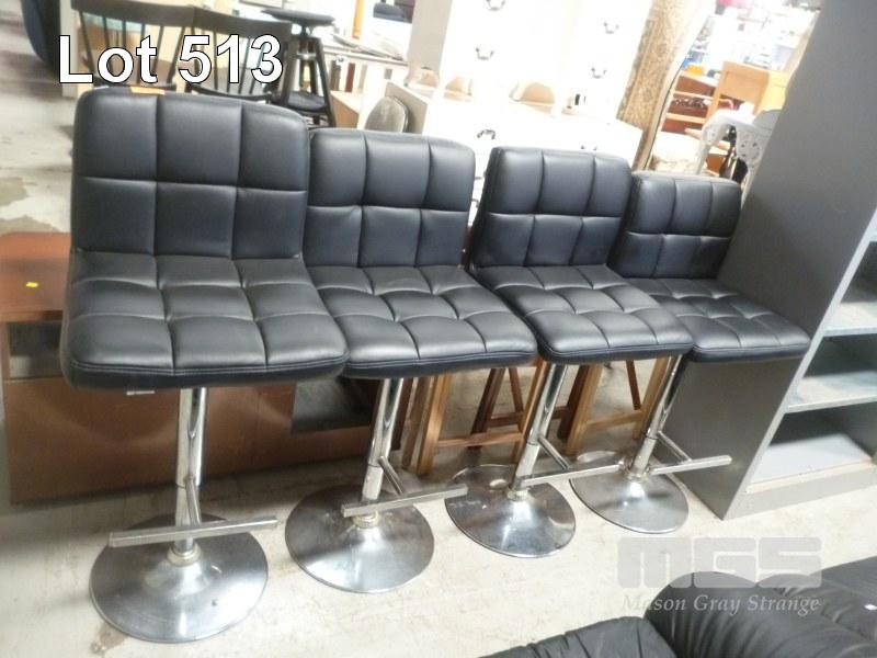 SET 4 BLACK VINYL BAR STOOLS, CHROME BASE, ADJUSTABLE