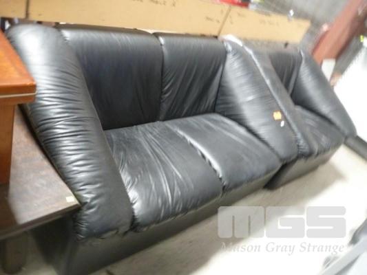 BLACK VINYL 2 PIECE LOUNGE SUITE INCLUDING 2 SEATER & SINGLE SEATER