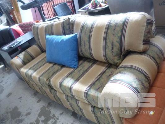 BEIGE/GREEN FABRIC SOFA BED, 2.5 SEATER
