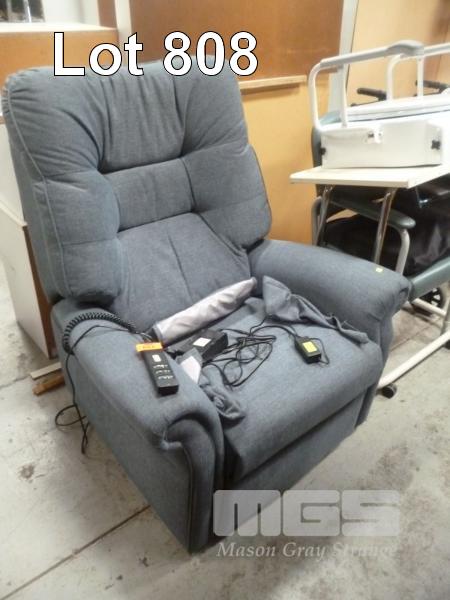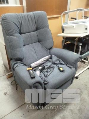 BLUE FABRIC LIFT CHAIR WITH BUILT IN BATTERY, POWER SUPPLY & REMOTE