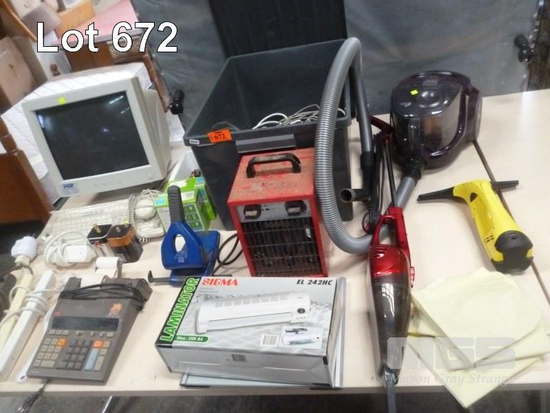 FULL BOAR FAN HEATER, PHILIPS VACUUM, MIDEA STICK VAC, SIGMA LAMINATOR, I.T SUNDRIES, ELECTRICAL ETC (1 x TABLE)