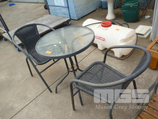 ALUMINUM FRAME 3 PIECE OUTDOOR SETTING, ROUND TABLE & 2 x CHAIRS