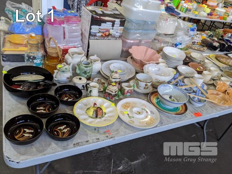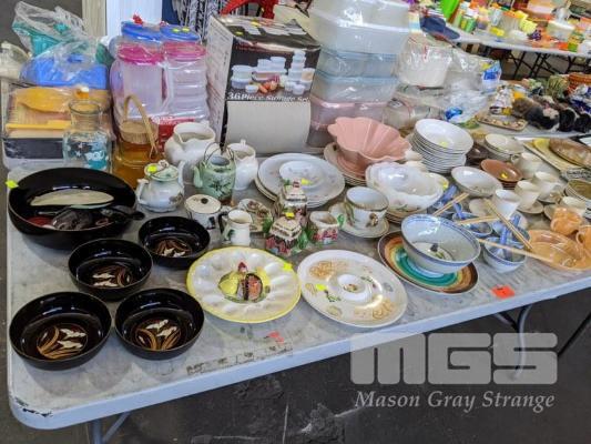 ASSORTED CERAMICWARE, PART DINNER SERVICE, STONEWARE & FIRE KING PIECES, 1 x TABLE