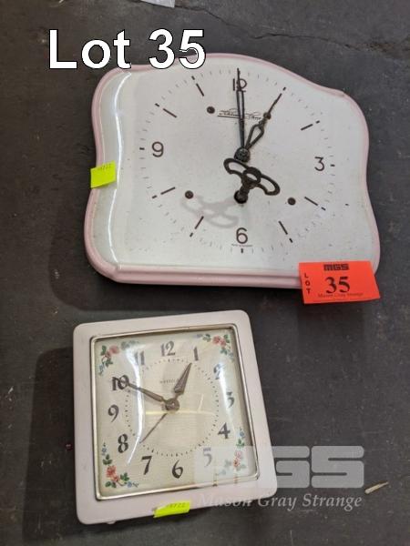 GERMAN CERAMIC WALL CLOCK WITH KEY, WESTCLOX ALARM CLOCK