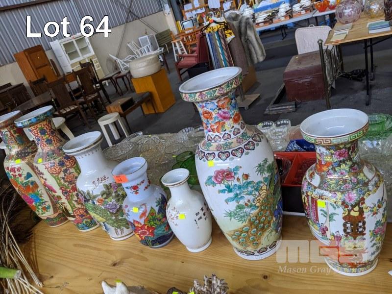 7 x ORIENTAL STYLE VASES, HAND PAINTED