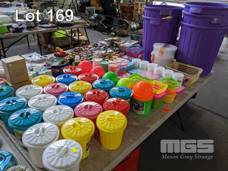 ASSORTED MINI PLASTIC BINS, PLASTIC CONTAINERS, ETC, 1 x TABLE