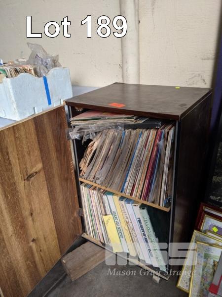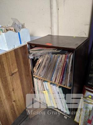 RECORD CABINET & CONTENTS ASSORTED LP RECORDS