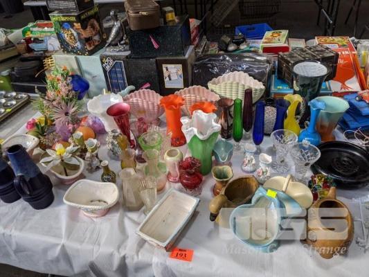 ASSORTED GLASS & CERAMIC VASES, ETC