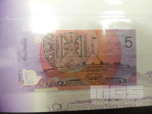 NOTE PRINTING AUSTRALIA, DELUXE LOW NUMBERED UNCIRCULATED $5 NOTE, 1997, AA 97004626