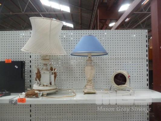 MARBLE TABLE LAMP, CERAMIC TABLE LAMP, (REQUIRES REPAIR) & HEAT LAMP