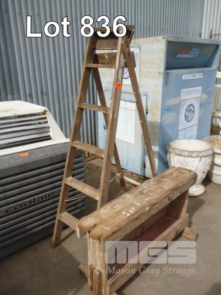 RUSTIC WOODEN STEP LADDER & BENCH SEAT
