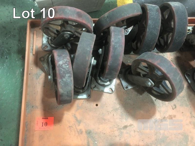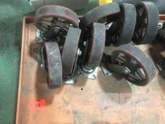 2 x FIXED & 6 x SWIVEL RED NYLON CASTORS, 200mm