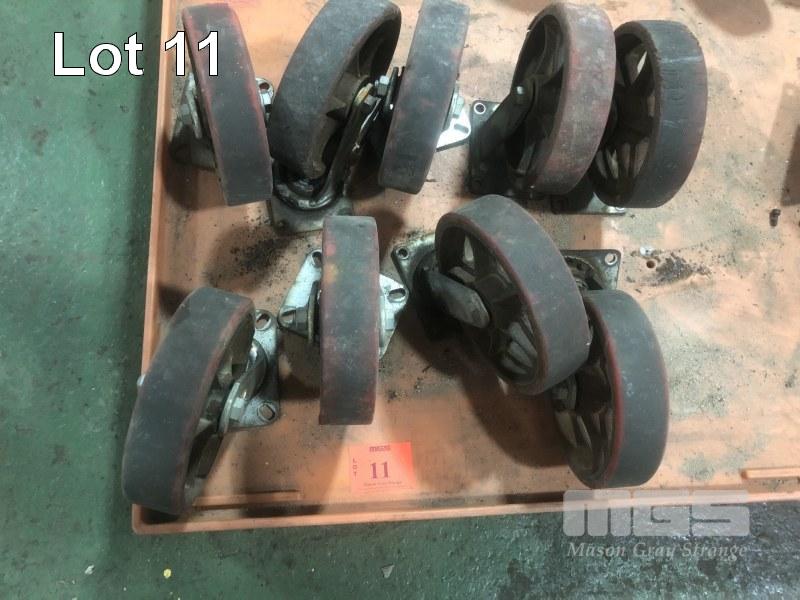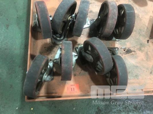 2 x FIXED & 6 x SWIVEL RED NYLON CASTORS, 200mm