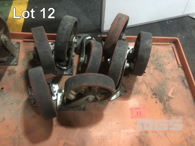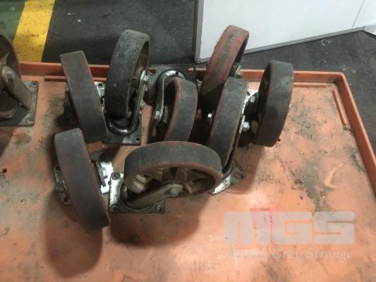 8 x SWIVEL RED NYLON CASTORS, 200mm