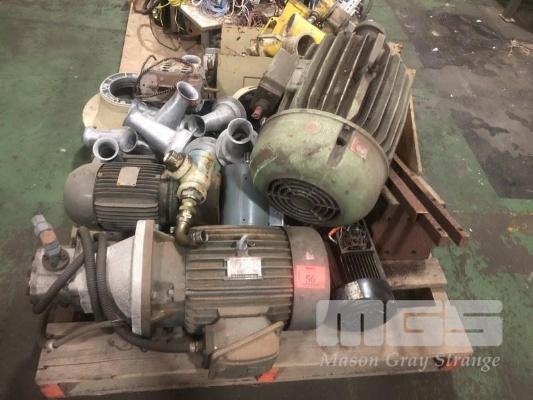 ASSORTED SCRAP STAINLESS STEEL, CAST ALLOY, CABLES & ELECTRIC MOTORS, 2 x PALLETS & 1 x STILLAGE