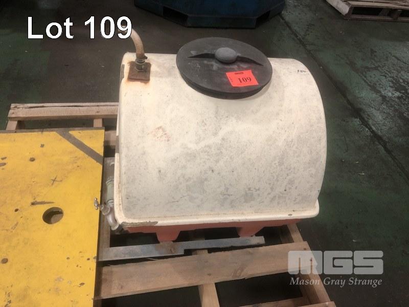 POLY TANK, APPROX 40 LITRE ON GALV BASE