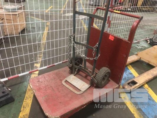 STEEL FRAME STOCK TROLLEY, 900 x 700mm RED NYLON CASTORS WITH SACK TRUCK