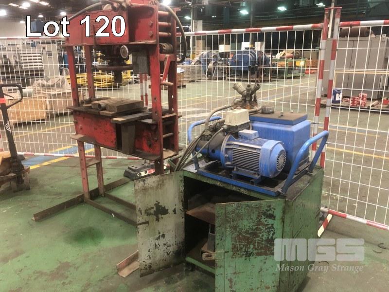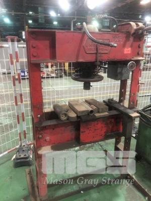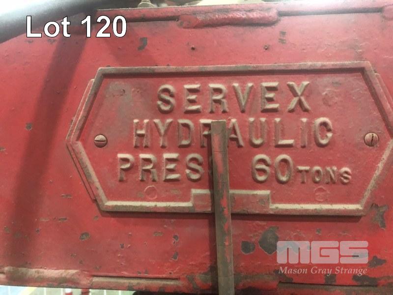 SERVEX 60T HYDRAULIC SHOP PRESS WITH POWER PACK, 415V RISE & FALL TABLE ON WINCH 1000mm BC ASSORTED DIES & PLATES