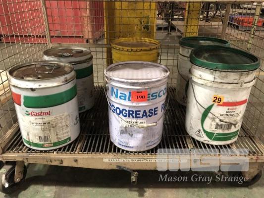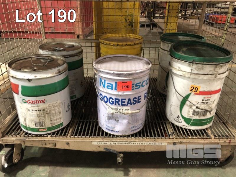 6 x DRUMS VARIOUS GREASE & GEAR OIL, CASTROL, SHELL, ETC