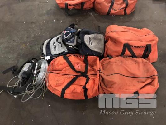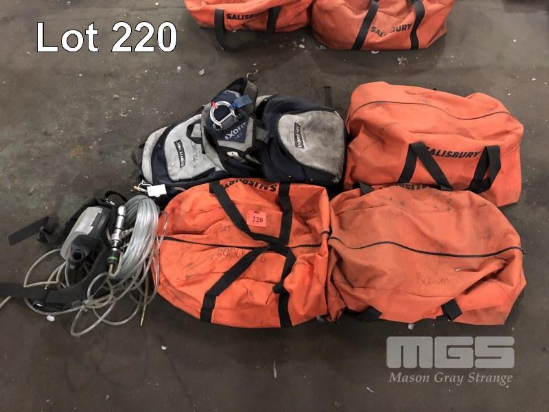 3 x SALISBURY PPE KIT, HELMET, OVERALLS, & 3 x EXO FIT SAFETY HARNESSES IN BAGS