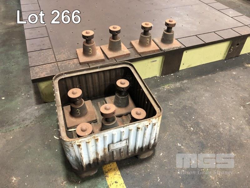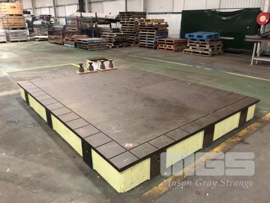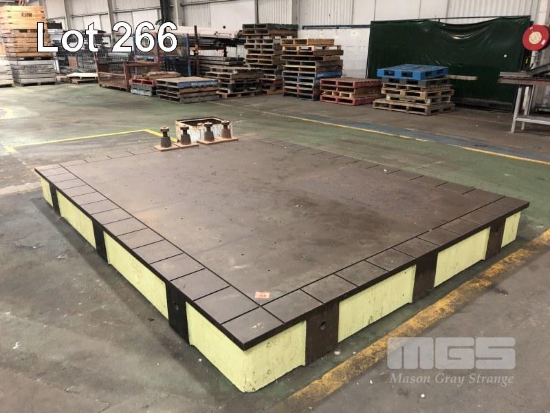 LARGE MCKECHNIE FOUNDRY SA CAST IRON GROUND SURFACE LAYOUT TABLES DRILLED & TAPPED @ 10" CENTRES (IN EXCELLENT CONDITION) 12 x 9' APPROX WITH 9 x ADJUSTABLE STANDS