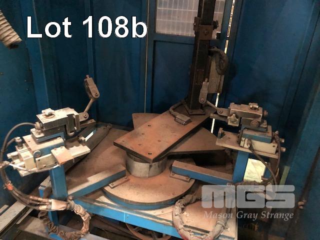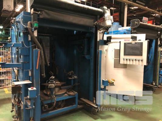 WELDING ENCLOSURE, ROTATING BASE. DUAL MIG WELDING GUNS, SCHNEIDER MAGELIS COMPACT IPC TOUCH SCREEN SCHMESAL INFRA RED SAFETY BEAMS, RISE & FALL POWERED CURTAIN, REAR DOOR ACCESS, E-STOP & AIR CONTROLS